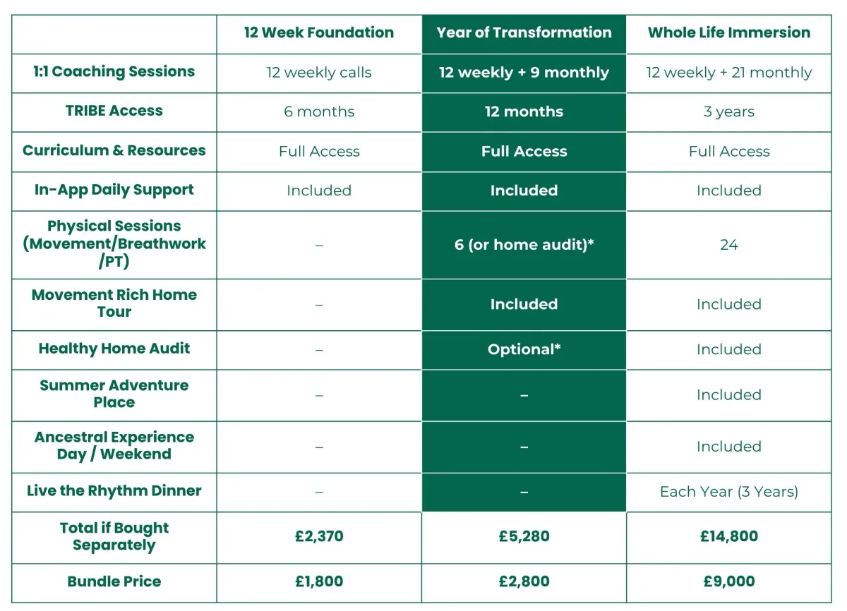 Transform your home, habits, and health over three years of immersive mentorship. Through lived experience, physical integration, and tailored ancestral immersion, this package reshapes how you operate and what your life stands for — not just how you feel day-to-day.